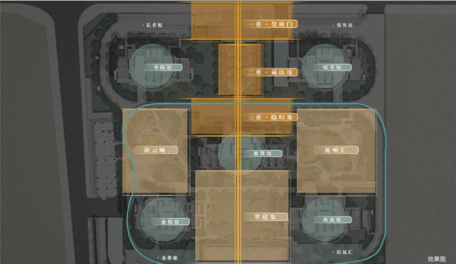 以中轴十字的对称体例建立楼位排布,